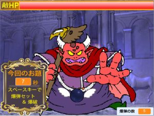 プレイヤーは毎回ランダムに出されるお題の秒数を、体内時計でカウントして爆弾を起爆させます!