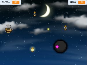 2月 ベーシックA 公開済み: 2026年1月31日更新: 2026年1月27日作成者: for-me 今月は「ライティングシップ」というゲームを制作します。 おじゃま虫を避けながらビームでランタンを灯し、夜空を明るく照らしましょう! また、今月のメインテーマは「変数」です。 ステージの明暗調整や制限時間、物体の動きなど、様々な処理を作る中で変数の有用性を学びます。 シューティングゲームには必須である「当たり判定」の作り方もポイントです。