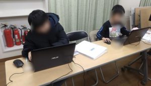 テキストエディタの使い方などを、先生とマンツーマンでみっちり学習します。